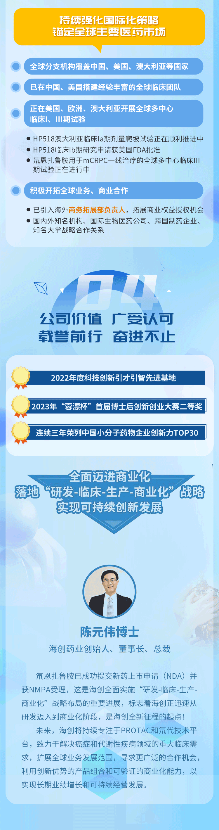 - 海創(chuàng)藥業(yè)在5th TPD Summit上發(fā)布HP518(口服AR PROTAC)臨床前研究