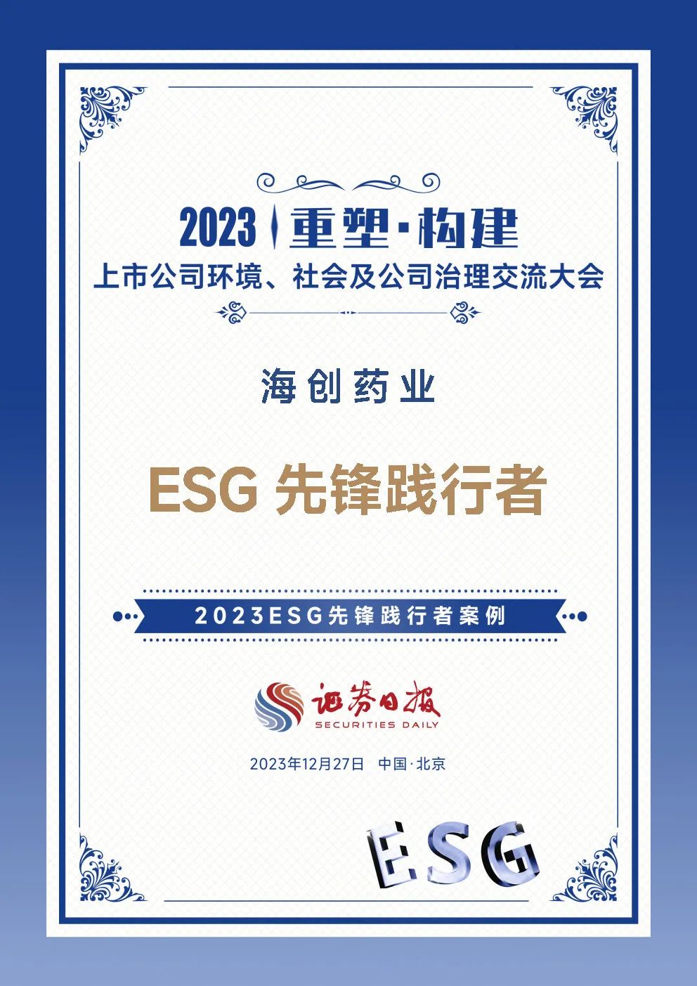 ESG殊榮|海創(chuàng)藥業(yè)榮獲“上市公司ESG先鋒踐行者案例”